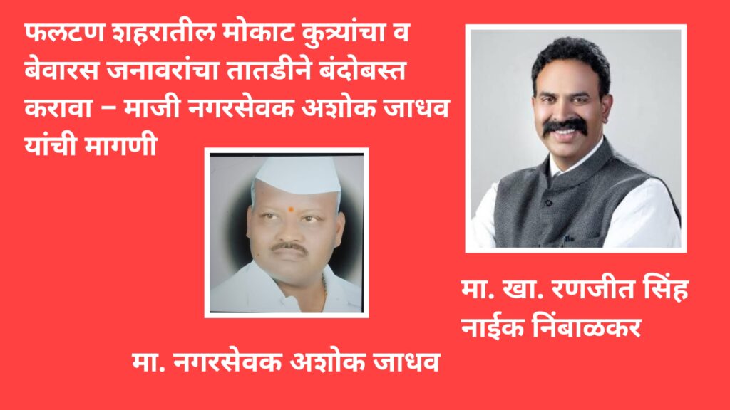 फलटण शहरात दिवसेंदिवस मोकाट भटक्या कुत्र्यांचा व बेवारस जनावरांचा त्रास वाढत चालला असून, नागरिकांच्या सुरक्षिततेला गंभीर धोका निर्माण झाला आहे. या संदर्भात माजी नगरसेवक श्री. अशोकराव जाधव यांनी नगरपालिका प्रशासनाकडे तातडीने कारवाई करण्याची मागणी केली आहे.