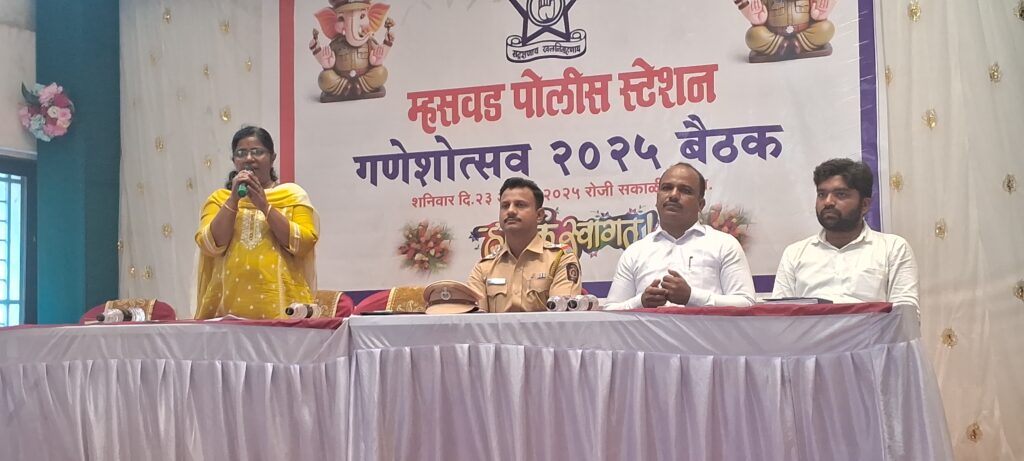यावेळेला सहाय्यक पोलीस निरीक्षक अक्षय सोनवणे यांनी गणेश उत्सव मंडळातील कार्यकर्त्यांना नियमाबाबत ची माहिती देऊन शासन नियम समजावून सांगितले व शासनाच्या नियमांचे उल्लंघन न करण्याचे आवाहन या वेळेला करून गणेश उत्सव हा राष्ट्रीय उत्सव म्हणून साजरा करण्यात येणार असून या उत्सवाच्या दरम्यान कोणताही अनुचित प्रकार घडू नये.