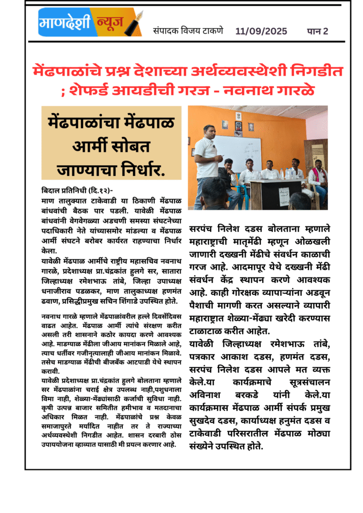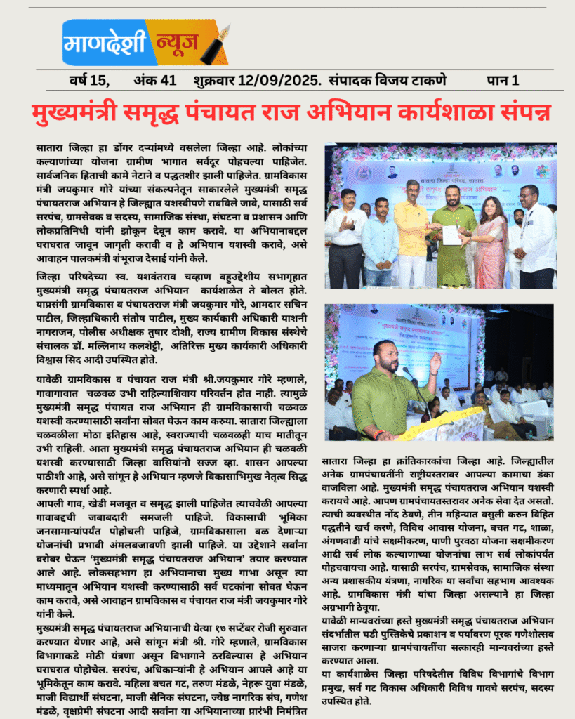 माणदेशी न्यूज ई पेपर , शुक्रवार 12/09/2025 Posted on September 12, 2025September 12, 2025 by vtakane@gmail.com Spread the love आपल्या परिसरातील बातम्या पाहण्यासाठी क्लिक करा Post Views: 27